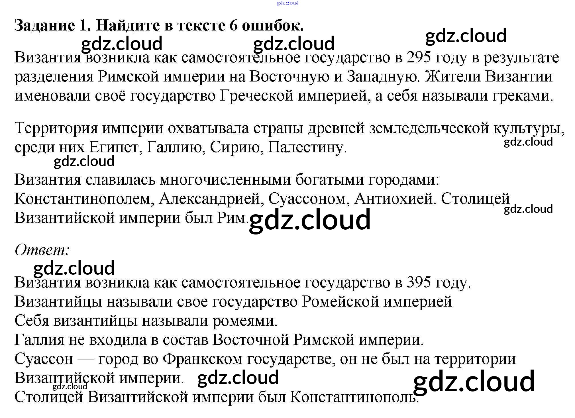 Ответ на задание 1 Рабочая тетрадь История за 6 (шестой) класс Крючкова 2015