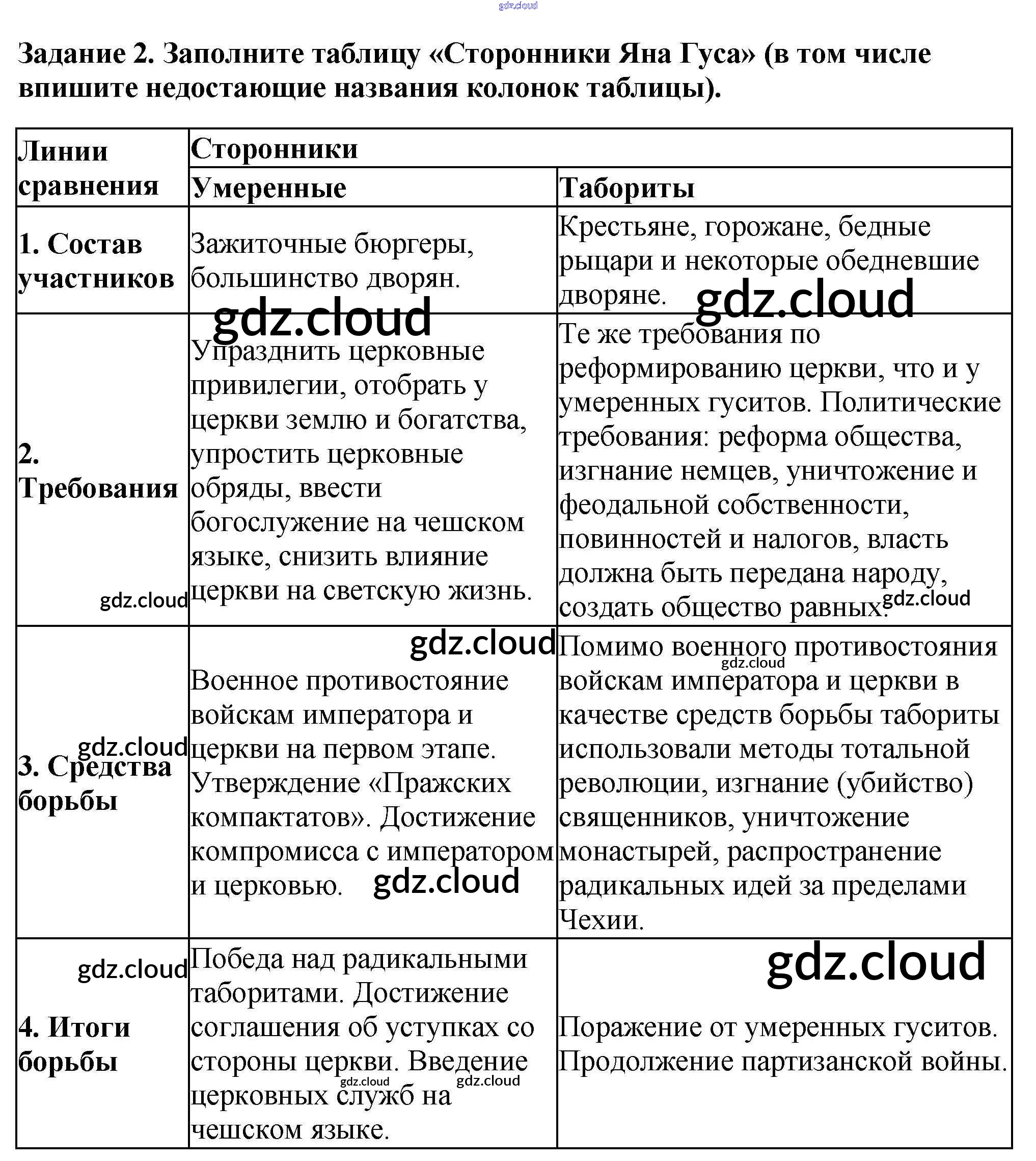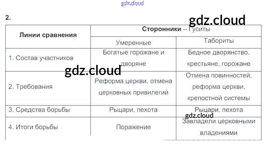 Ответы к § 24 «Гуситское движение в Чехии» по Истории 6 класс Рабочая тетрадь Крючкова Просвещение