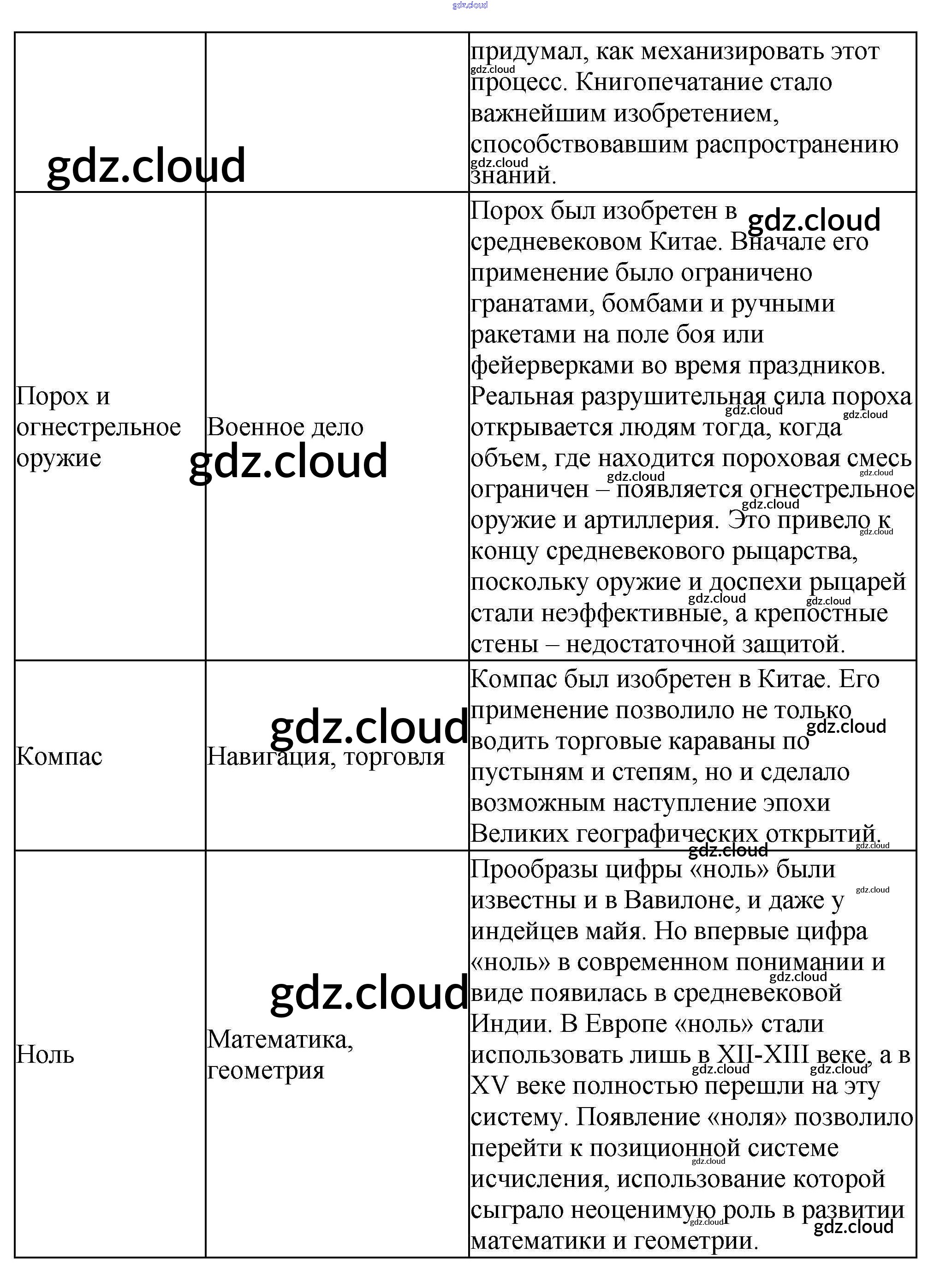 Ответы к § 30 «Научные открытия и изобретения» по Истории 6 класс Рабочая тетрадь Крючкова Просвещение