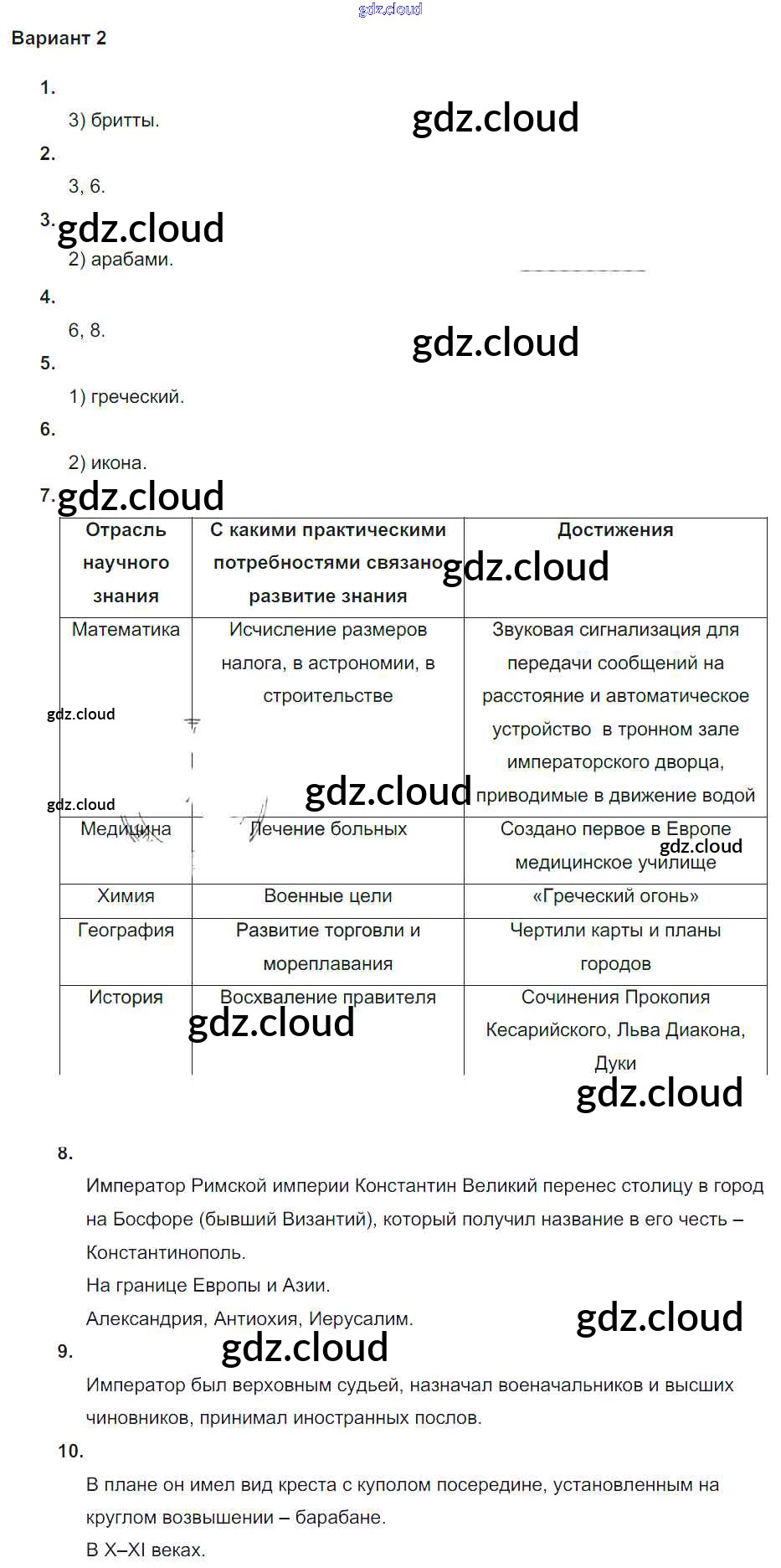 Ответ на задание вариант-2 Проверочные и контрольные работы История за 6 (шестой) класс Крючкова 2014