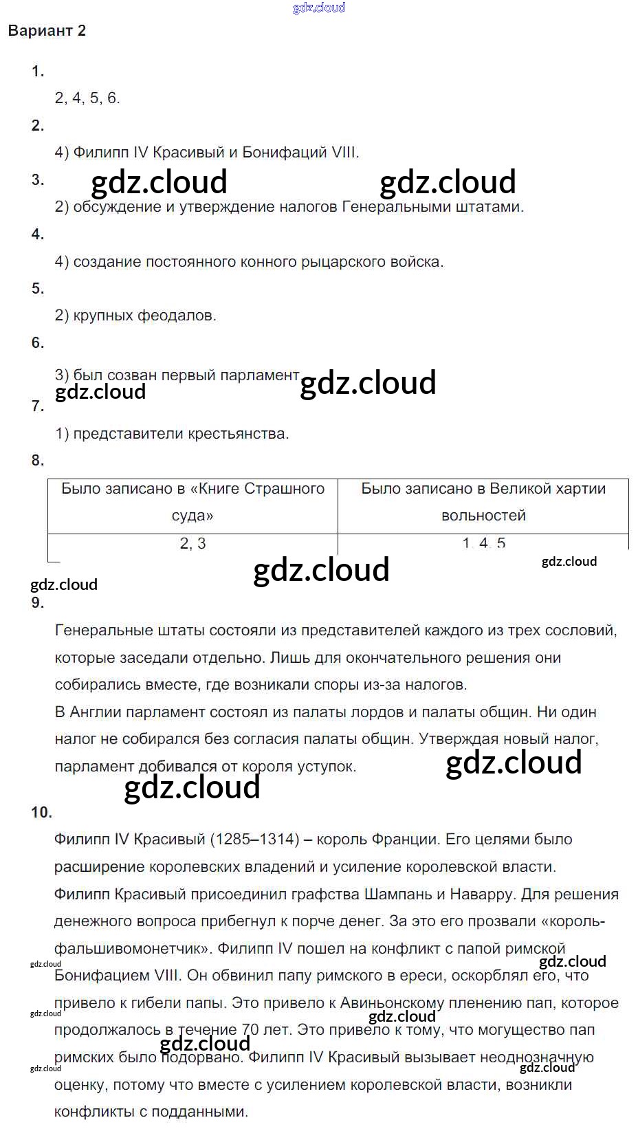 Ответ на задание вариант-2 Проверочные и контрольные работы История за 6 (шестой) класс Крючкова 2014