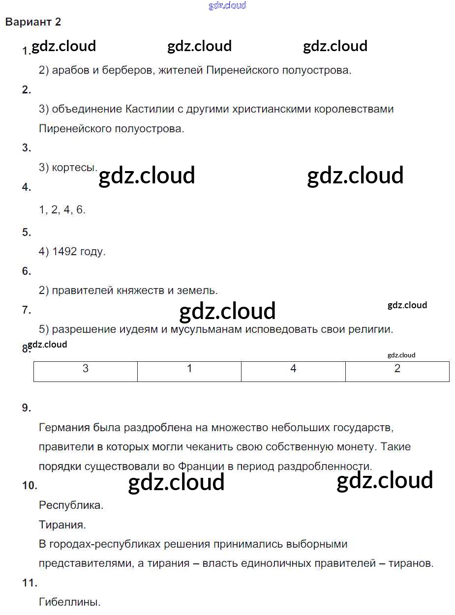 Ответ на задание вариант-2 Проверочные и контрольные работы История за 6 (шестой) класс Крючкова 2014