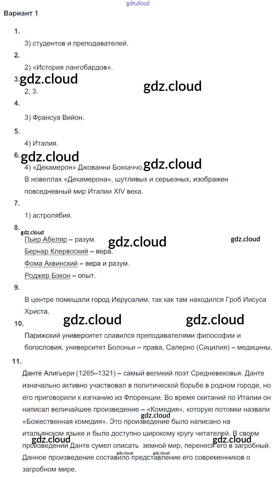 Ответ на задание вариант-1 Проверочные и контрольные работы История за 6 (шестой) класс Крючкова 2014