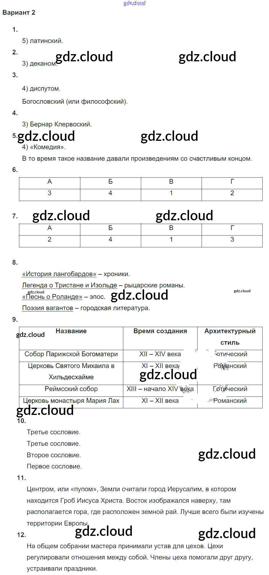 Ответ на задание вариант-2 Проверочные и контрольные работы История за 6 (шестой) класс Крючкова 2014