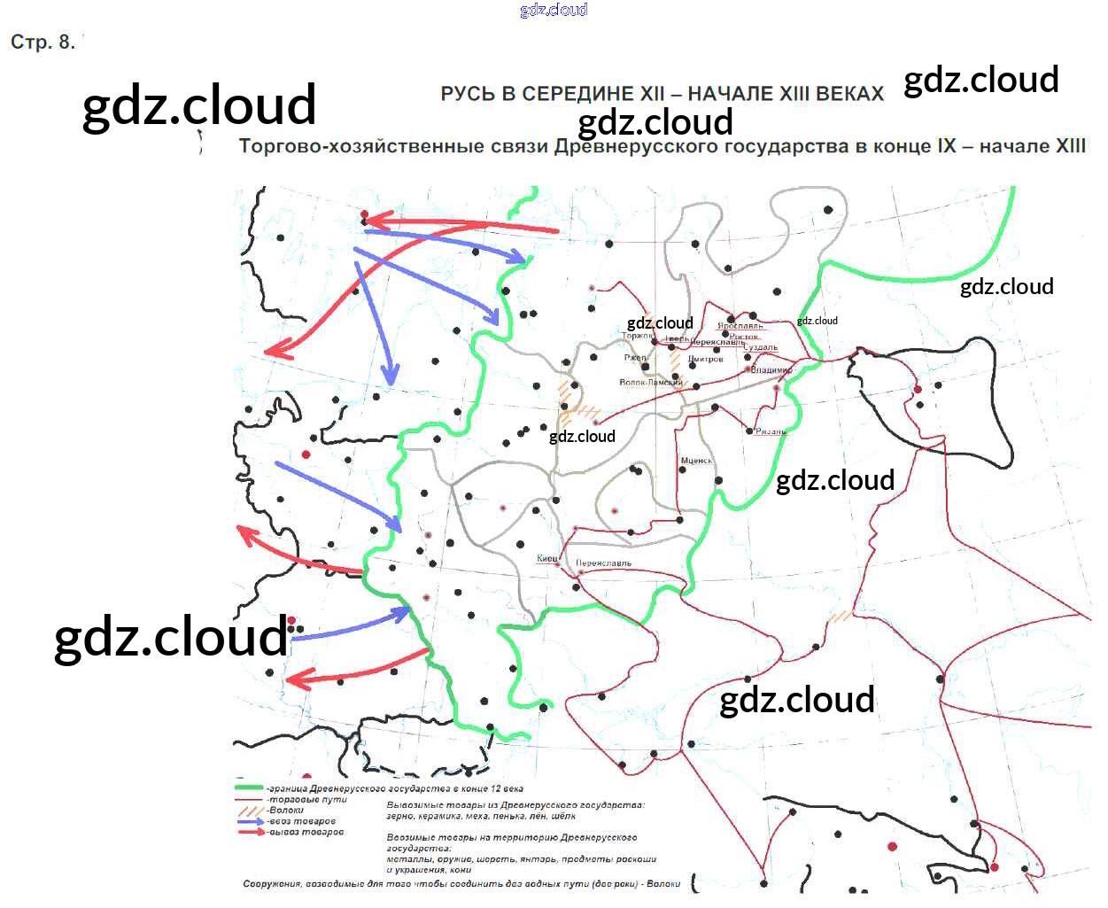 Ответы к теме Русь в середине XII - начале XIII века по Истории 6 класс Контурные карты Тороп УМК Просвещение