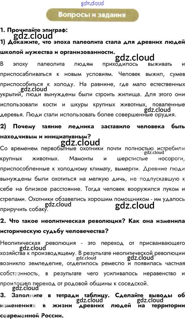 §1. Древние люди на территории нашей страны Учебник 2020 (ответы) по Истории 6 класс Учебник Андреев Вертикаль Дрофа, Дрофа