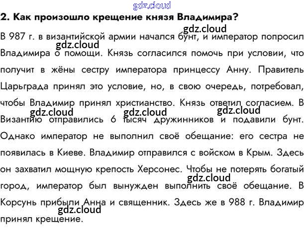 §7. Князь Владимир и Крещение Руси Учебник 2020 (ответы) по Истории 6 класс Учебник Андреев Вертикаль Дрофа, Дрофа