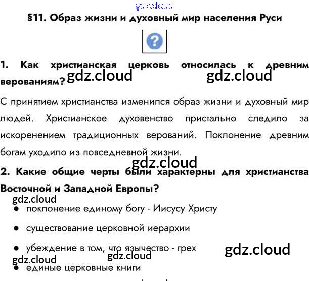 §11. Образ жизни и духовный мир населения Руси Учебник 2020 (ответы) по Истории 6 класс Учебник Андреев Вертикаль Дрофа, Дрофа