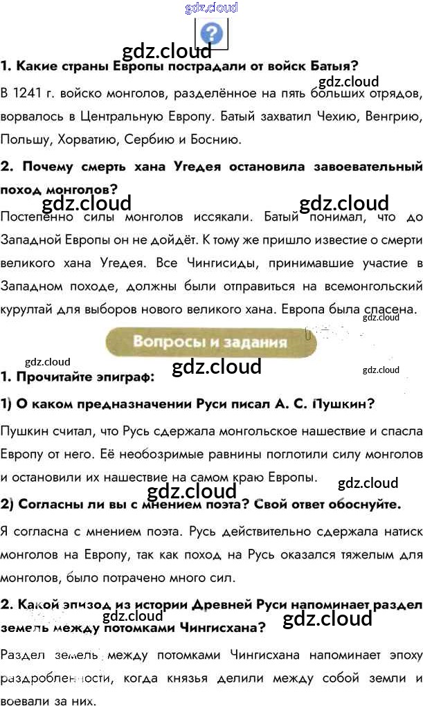 §18. Походы Батыя Учебник 2020 (ответы) по Истории 6 класс Учебник Андреев Вертикаль Дрофа, Дрофа