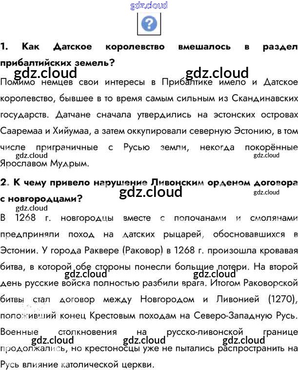 §19. Александр Невский и отражение натиска с запада Учебник 2020 (ответы) по Истории 6 класс Учебник Андреев Вертикаль Дрофа, Дрофа