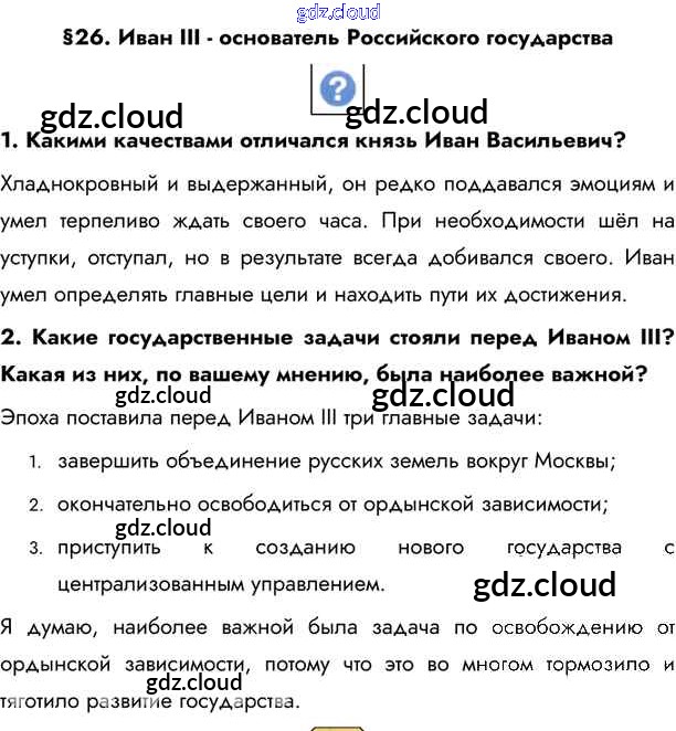 §26. Иван III — основатель Российского государства Учебник 2020 (ответы) по Истории 6 класс Учебник Андреев Вертикаль Дрофа, Дрофа