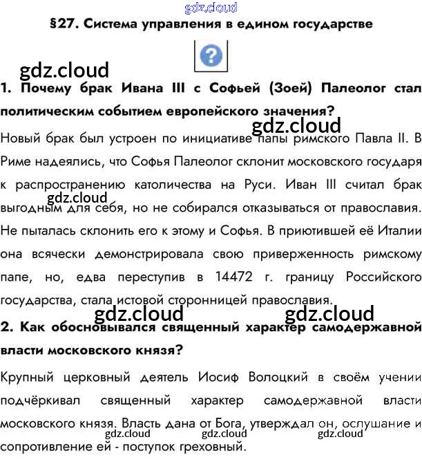 §27. Система управления в едином государстве Учебник 2020 (ответы) по Истории 6 класс Учебник Андреев Вертикаль Дрофа, Дрофа