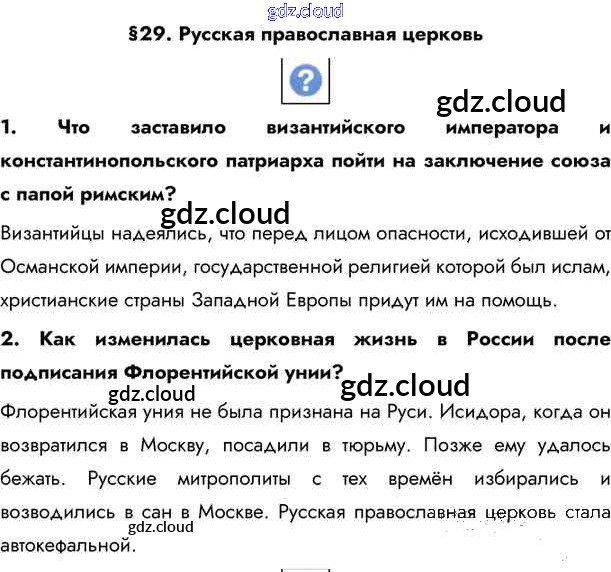 §29. Русская православная церковь Учебник 2020 (ответы) по Истории 6 класс Учебник Андреев Вертикаль Дрофа, Дрофа