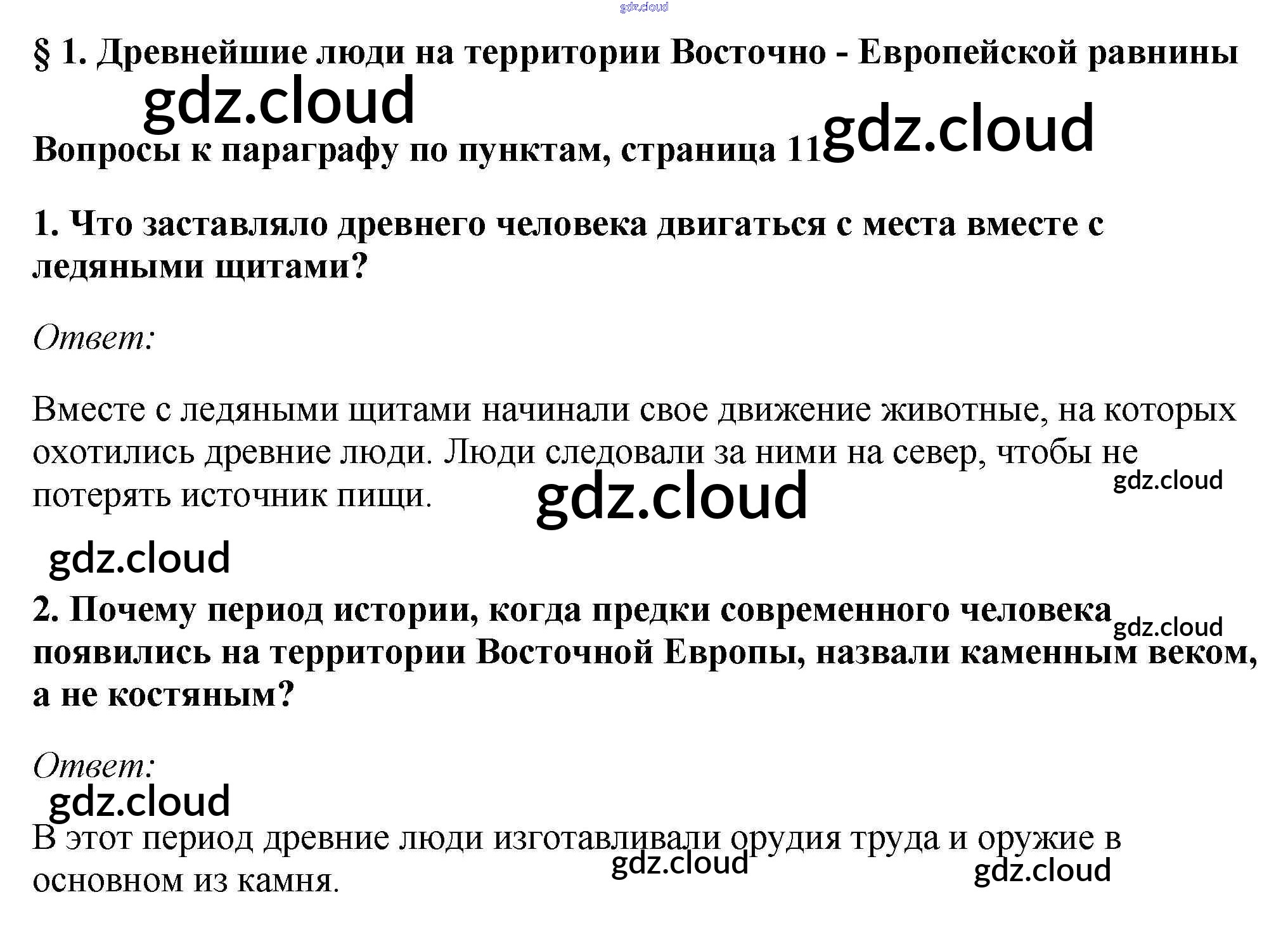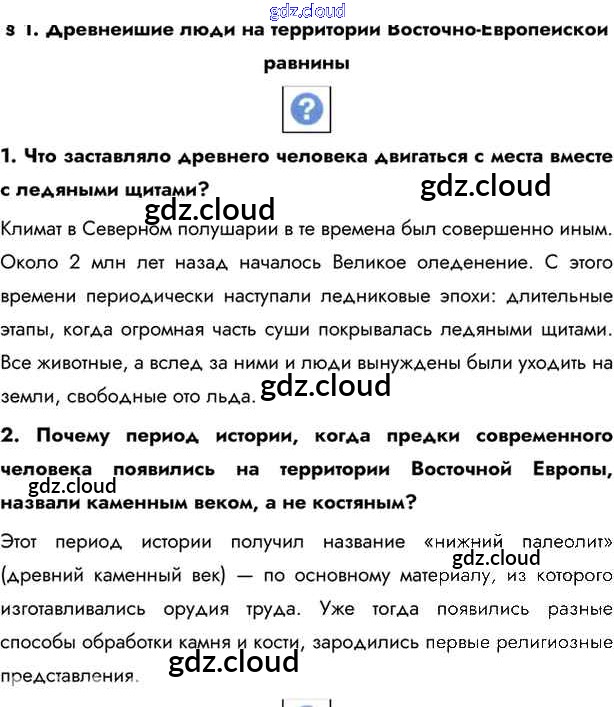 §1. Древнейшие люди на территории Восточно - Европейской равнины Учебник 2016 (ответы) по Истории 6 класс Учебник Андреев Вертикаль Дрофа, Дрофа