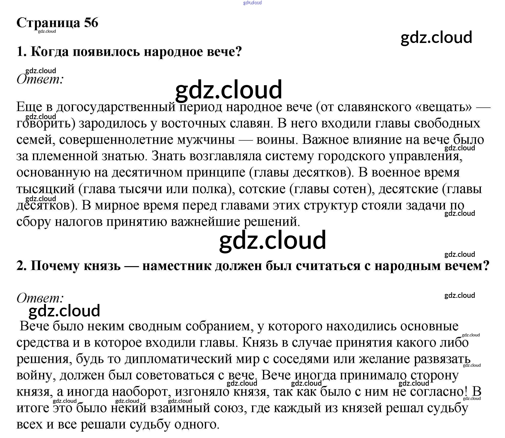 Ответ на задание стр.56 Учебник История за 6 (шестой) класс Андреев, Федоров Вертикаль 2016, 2020