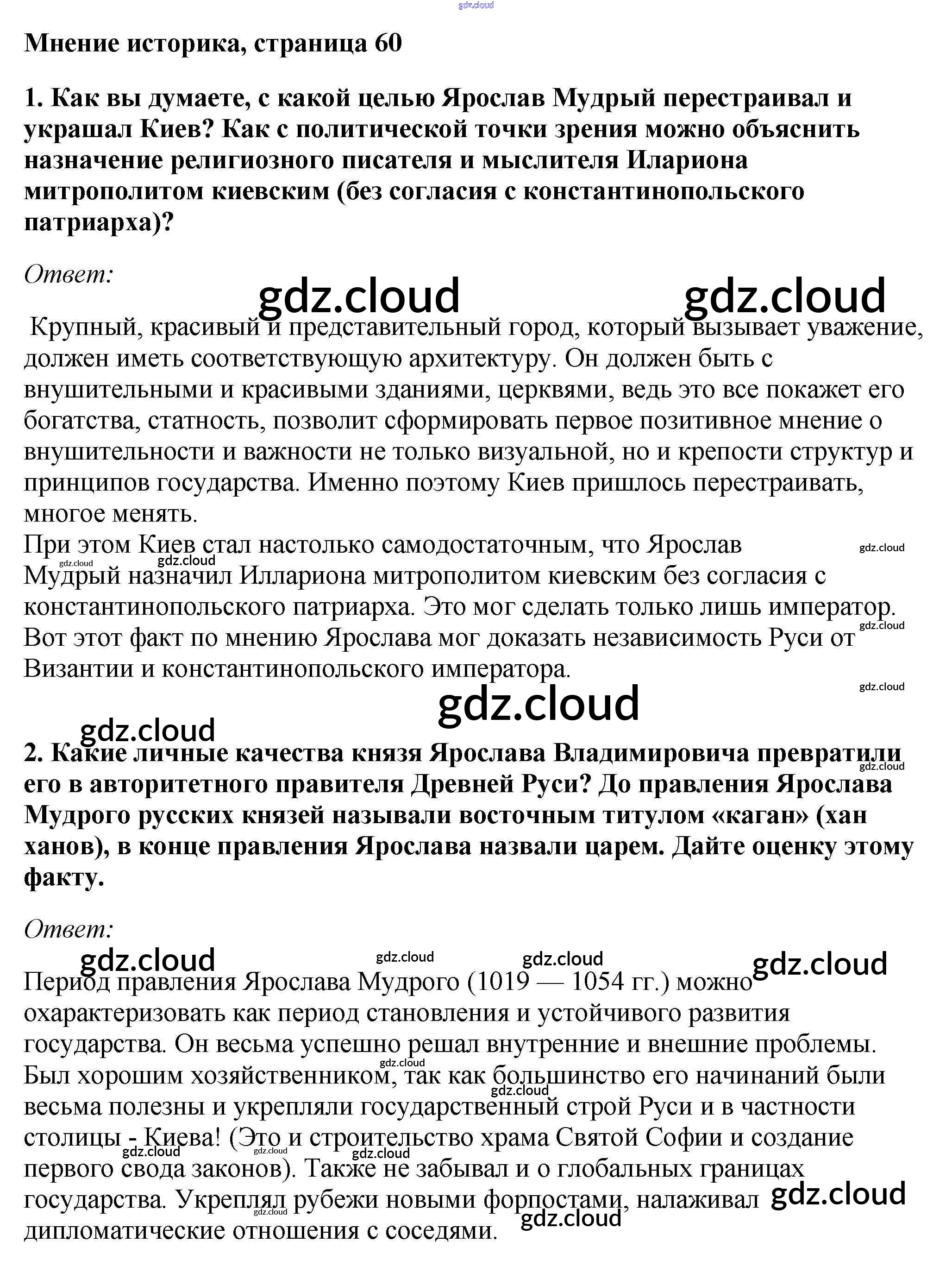 Ответ на задание стр.60 Учебник История за 6 (шестой) класс Андреев, Федоров Вертикаль 2016, 2020