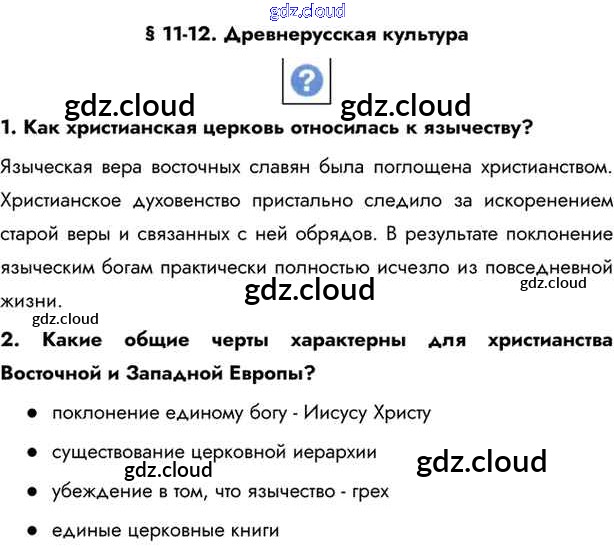 §11-12. Древнерусская культура Учебник 2016 (ответы) по Истории 6 класс Учебник Андреев Вертикаль Дрофа, Дрофа