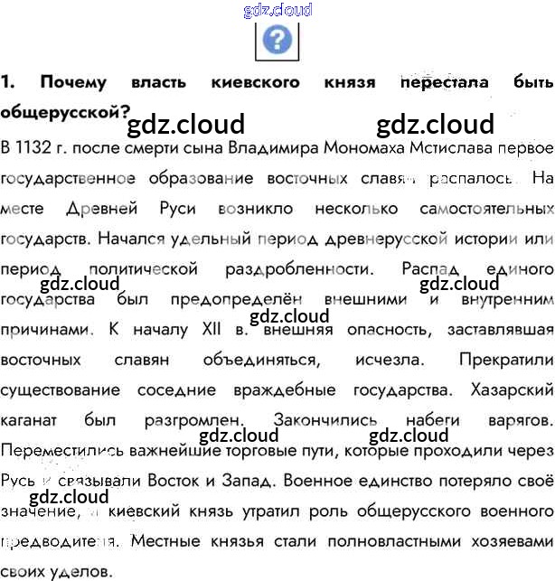 §13. Начало удельного периода Княжества Южной Руси Учебник 2016 (ответы) по Истории 6 класс Учебник Андреев Вертикаль Дрофа, Дрофа