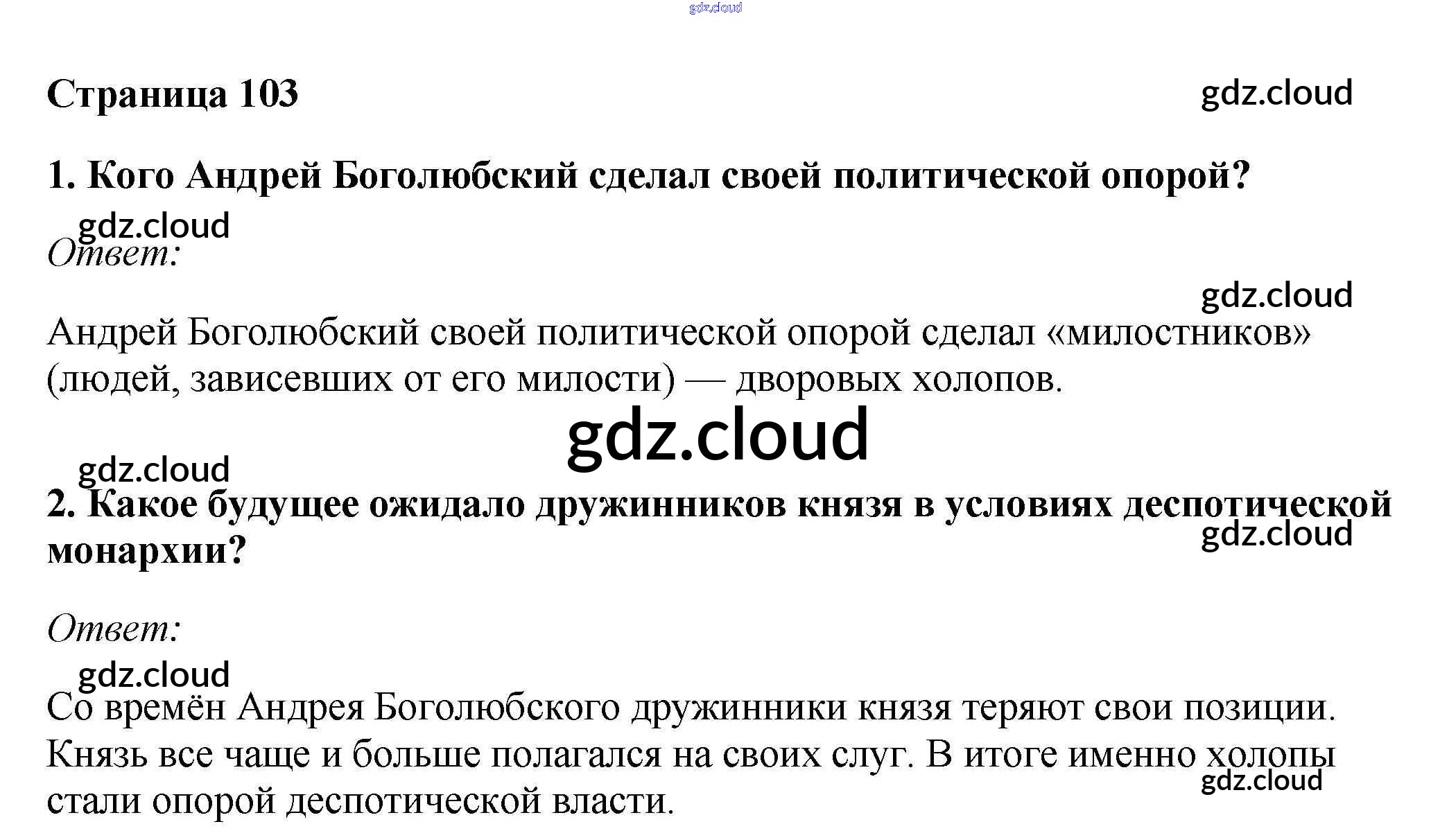 Ответ на задание стр.103 Учебник История за 6 (шестой) класс Андреев, Федоров Вертикаль 2016, 2020