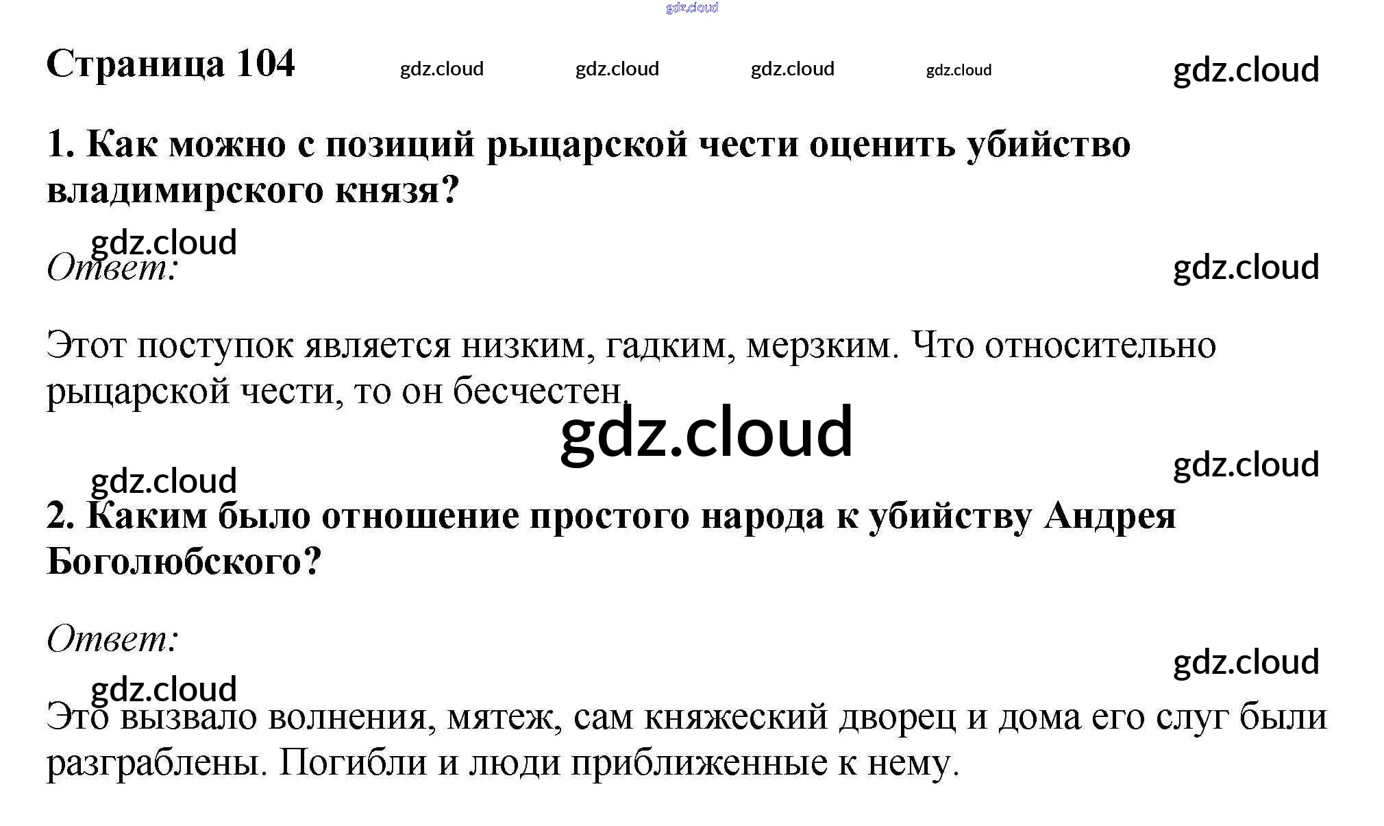 Ответ на задание стр.104 Учебник История за 6 (шестой) класс Андреев, Федоров Вертикаль 2016, 2020