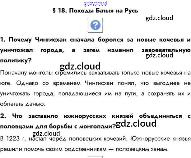 §18. Походы Батыя на Русь Учебник 2016 (ответы) по Истории 6 класс Учебник Андреев Вертикаль Дрофа, Дрофа