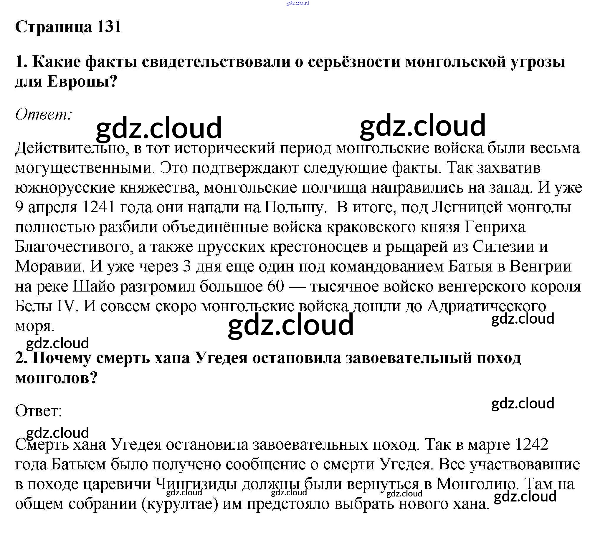 Ответ на задание стр.131 Учебник История за 6 (шестой) класс Андреев, Федоров Вертикаль 2016, 2020