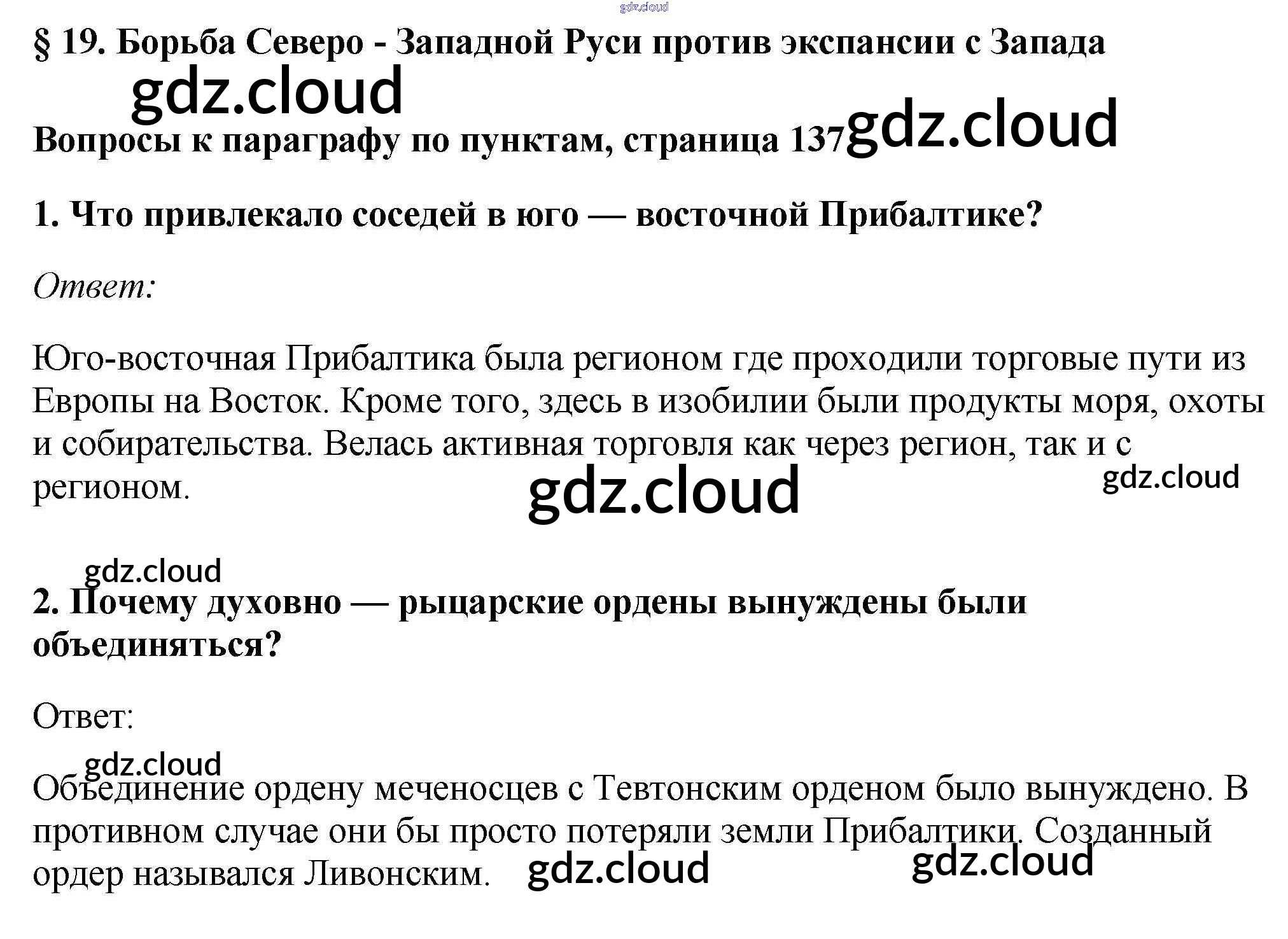 §19. Борьба Северо - Западной Руси против экспансии с Запада Учебник 2016 (ответы) по Истории 6 класс Учебник Андреев Вертикаль Дрофа, Дрофа
