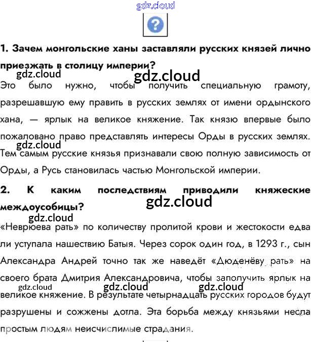 §20-21. Русские земли под властью Орды Учебник 2016 (ответы) по Истории 6 класс Учебник Андреев Вертикаль Дрофа, Дрофа