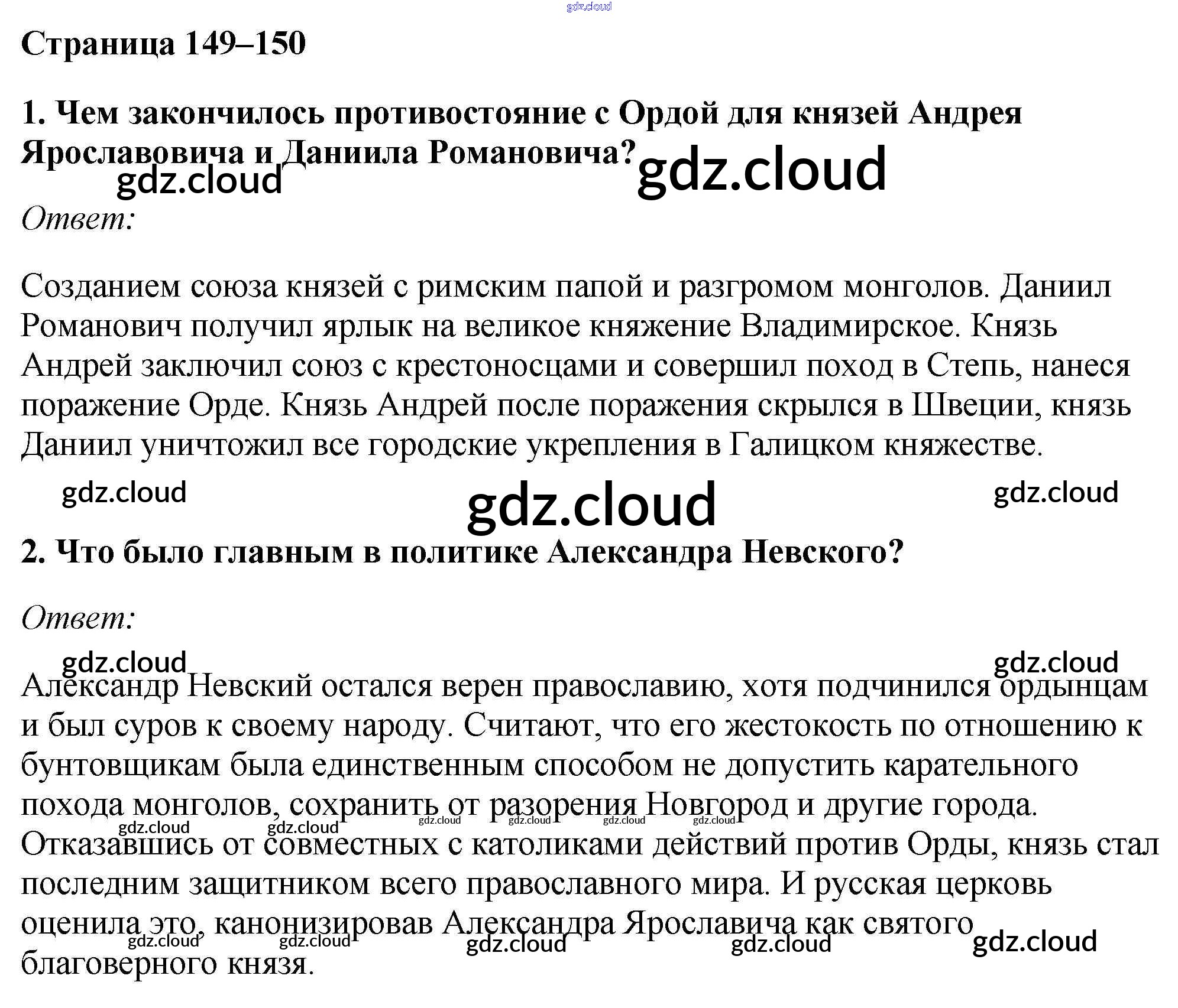 Ответ на задание стр.149 Учебник История за 6 (шестой) класс Андреев, Федоров Вертикаль 2016, 2020