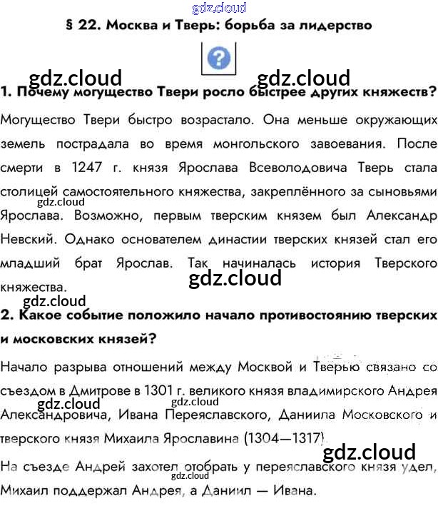 §22. Москва и Тверь: борьба за лидерство Учебник 2016 (ответы) по Истории 6 класс Учебник Андреев Вертикаль Дрофа, Дрофа
