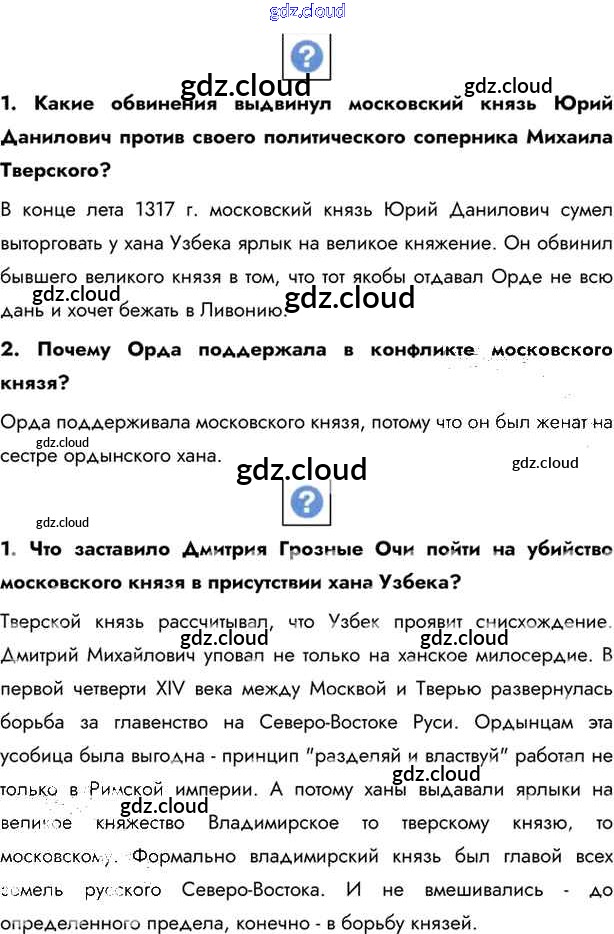 §22. Москва и Тверь: борьба за лидерство Учебник 2016 (ответы) по Истории 6 класс Учебник Андреев Вертикаль Дрофа, Дрофа