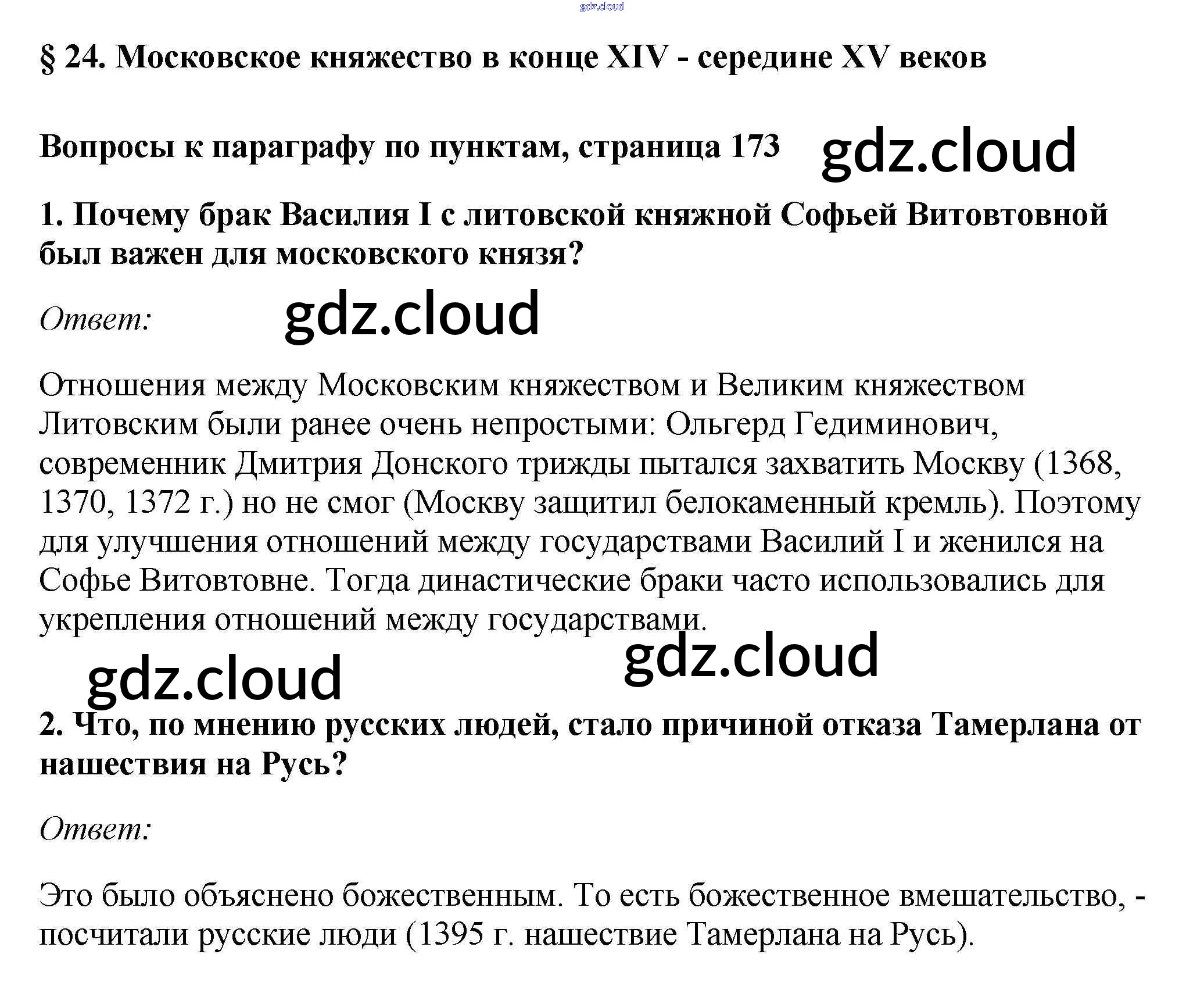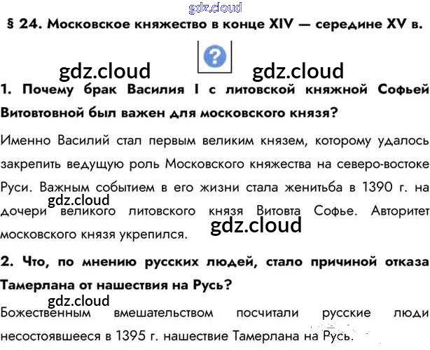 §24. Московское княжество в конце XIV - середине XV веков Учебник 2016 (ответы) по Истории 6 класс Учебник Андреев Вертикаль Дрофа, Дрофа