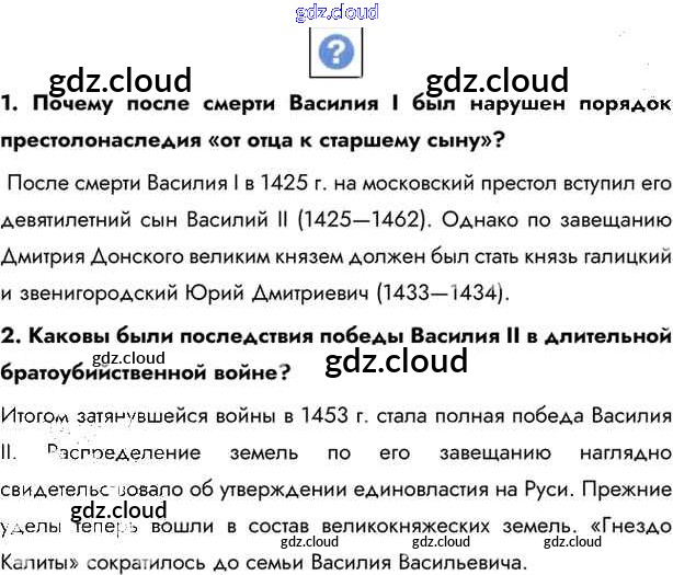 §24. Московское княжество в конце XIV - середине XV веков Учебник 2016 (ответы) по Истории 6 класс Учебник Андреев Вертикаль Дрофа, Дрофа
