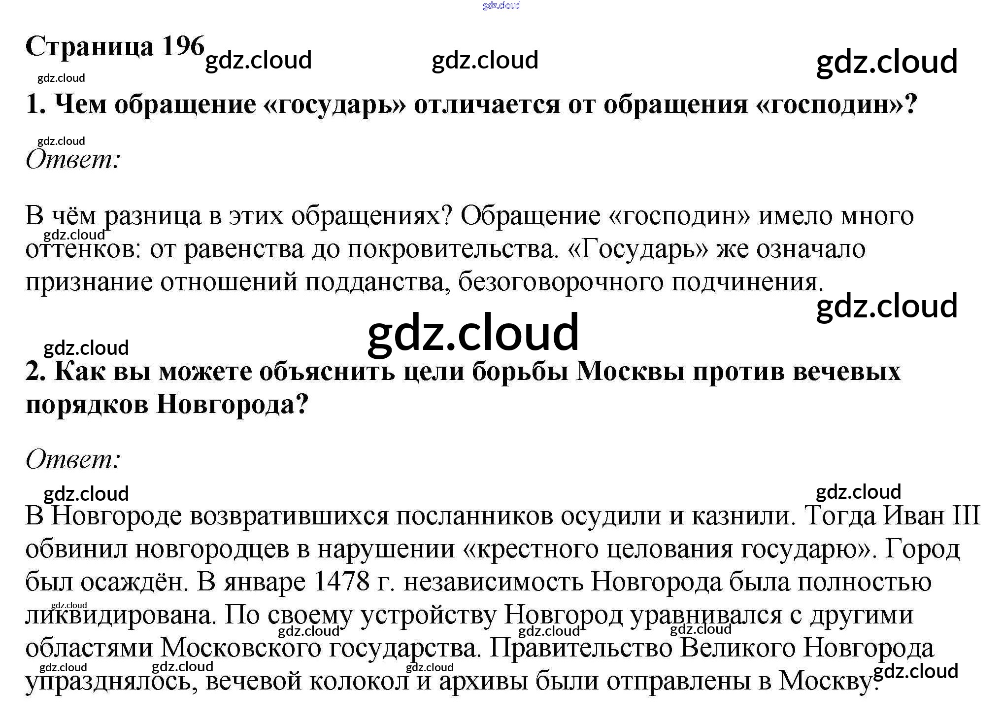 Ответ на задание стр.196 Учебник История за 6 (шестой) класс Андреев, Федоров Вертикаль 2016, 2020