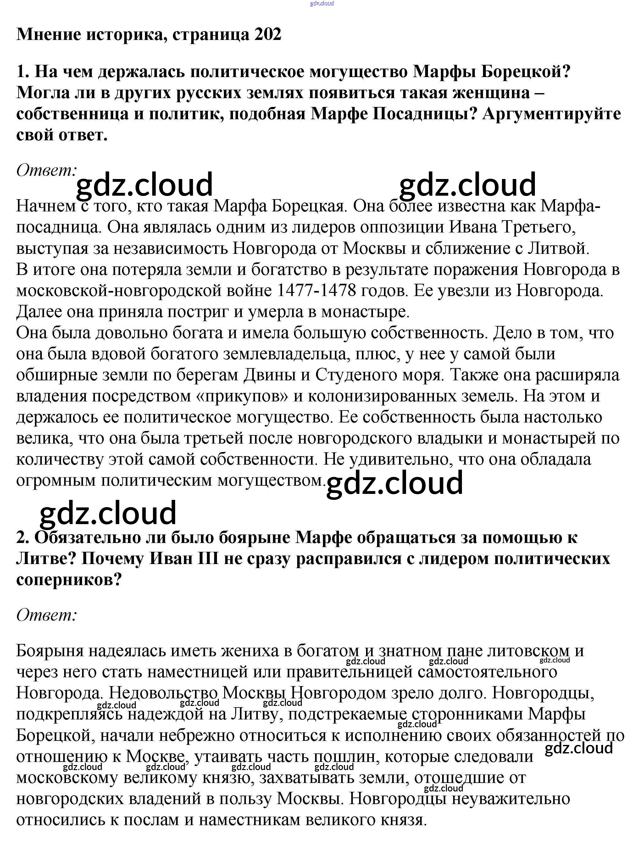 Ответ на задание стр.202 Учебник История за 6 (шестой) класс Андреев, Федоров Вертикаль 2016, 2020