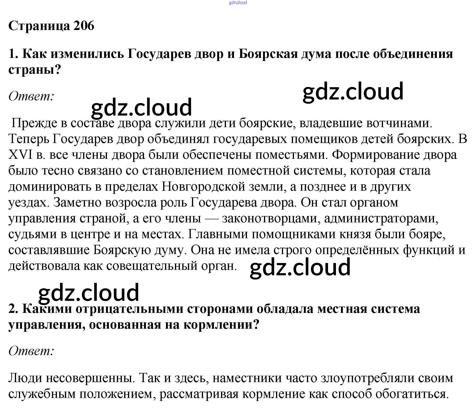 Ответ на задание стр.206 Учебник История за 6 (шестой) класс Андреев, Федоров Вертикаль 2016, 2020