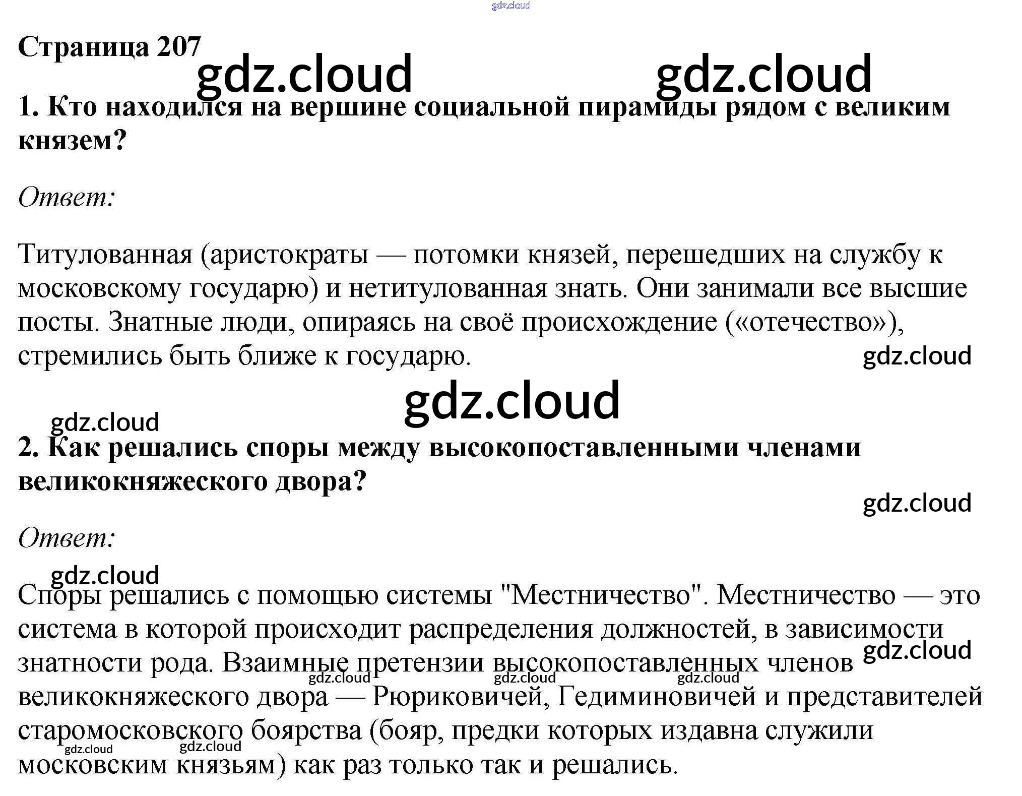 Ответ на задание стр.207 Учебник История за 6 (шестой) класс Андреев, Федоров Вертикаль 2016, 2020
