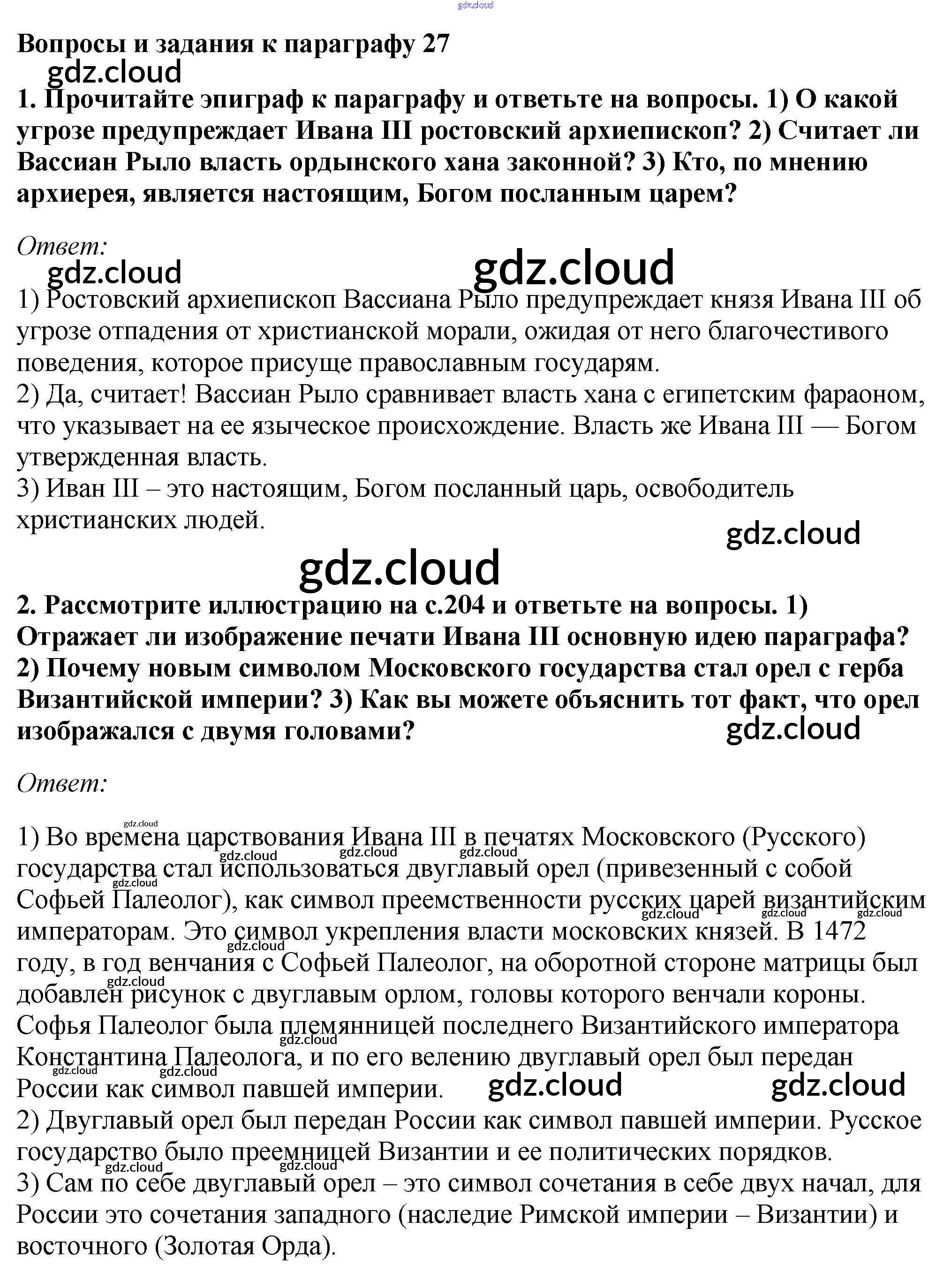 §27. Русское государство во второй половине XV - начале XVI вв. Учебник 2016 (ответы) по Истории 6 класс Учебник Андреев Вертикаль Дрофа, Дрофа