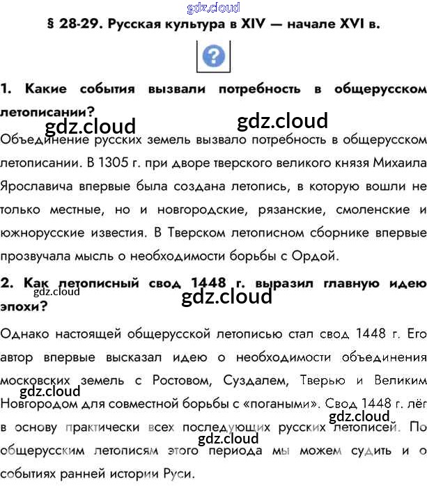 §28-29. Русская культура в XIV - начале XVI вв. Учебник 2016 (ответы) по Истории 6 класс Учебник Андреев Вертикаль Дрофа, Дрофа