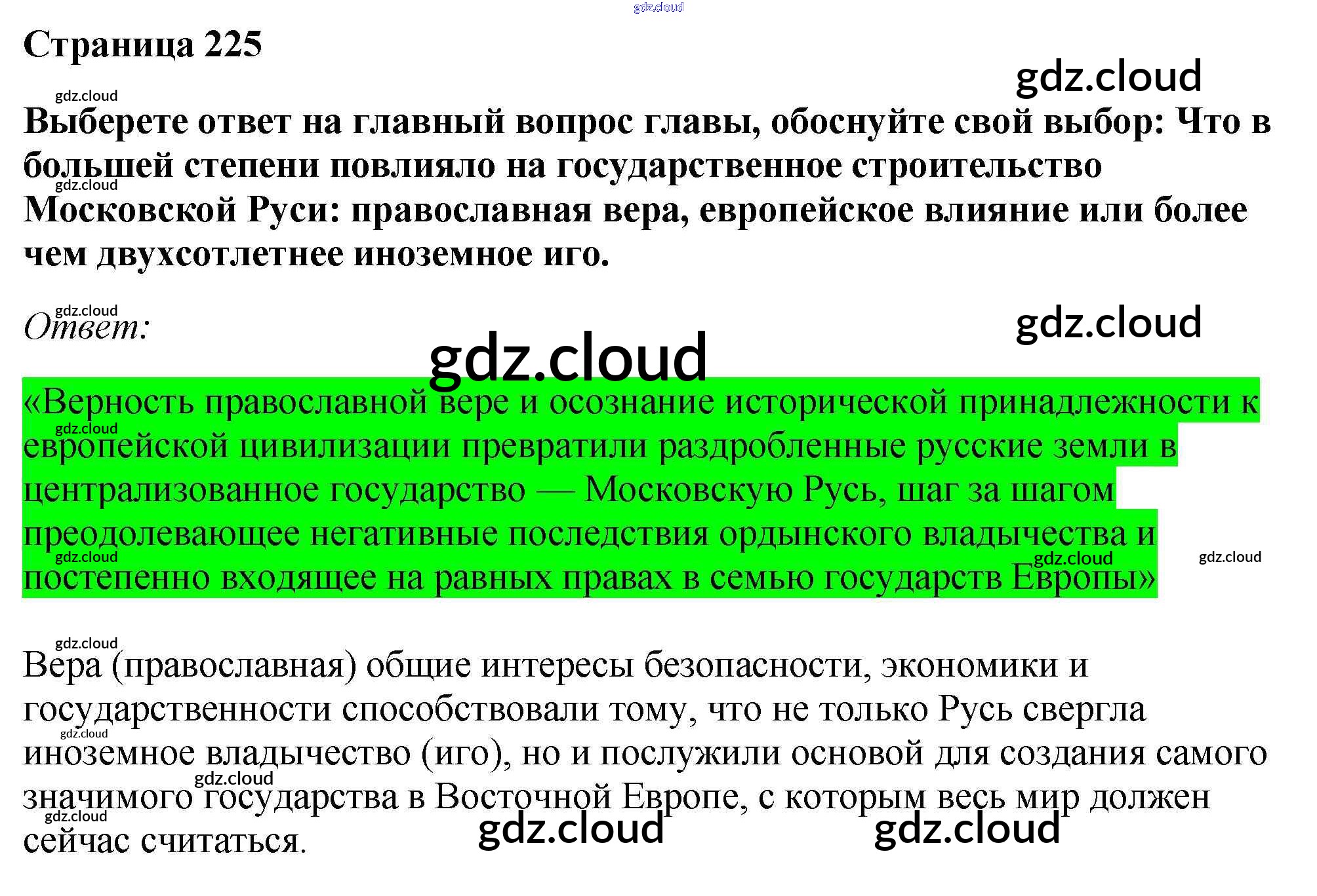Ответ на задание стр.225 Учебник История за 6 (шестой) класс Андреев, Федоров Вертикаль 2016, 2020