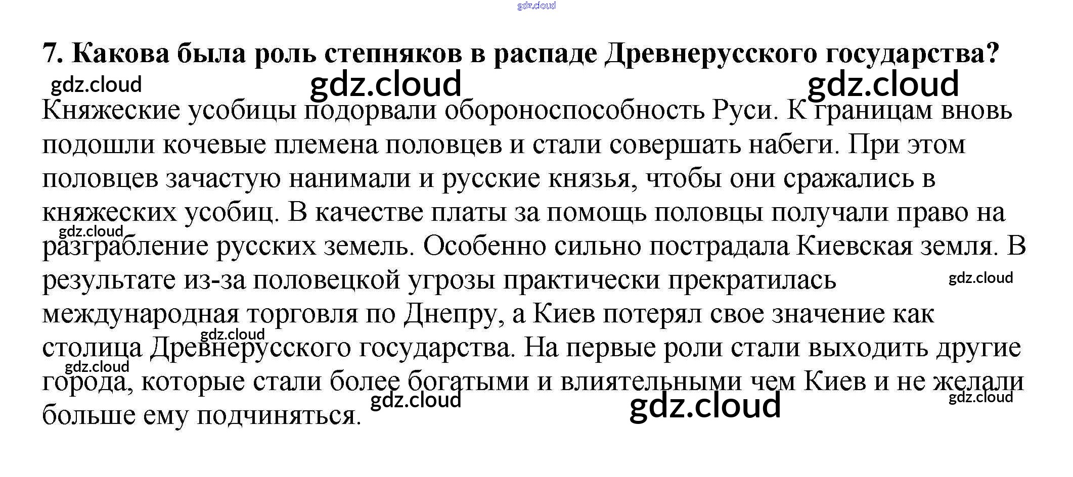 Ответ на задание 7 Учебник История за 6 (шестой) класс Арсентьев, Данилов, Стефанович 2016 Часть 1, 2