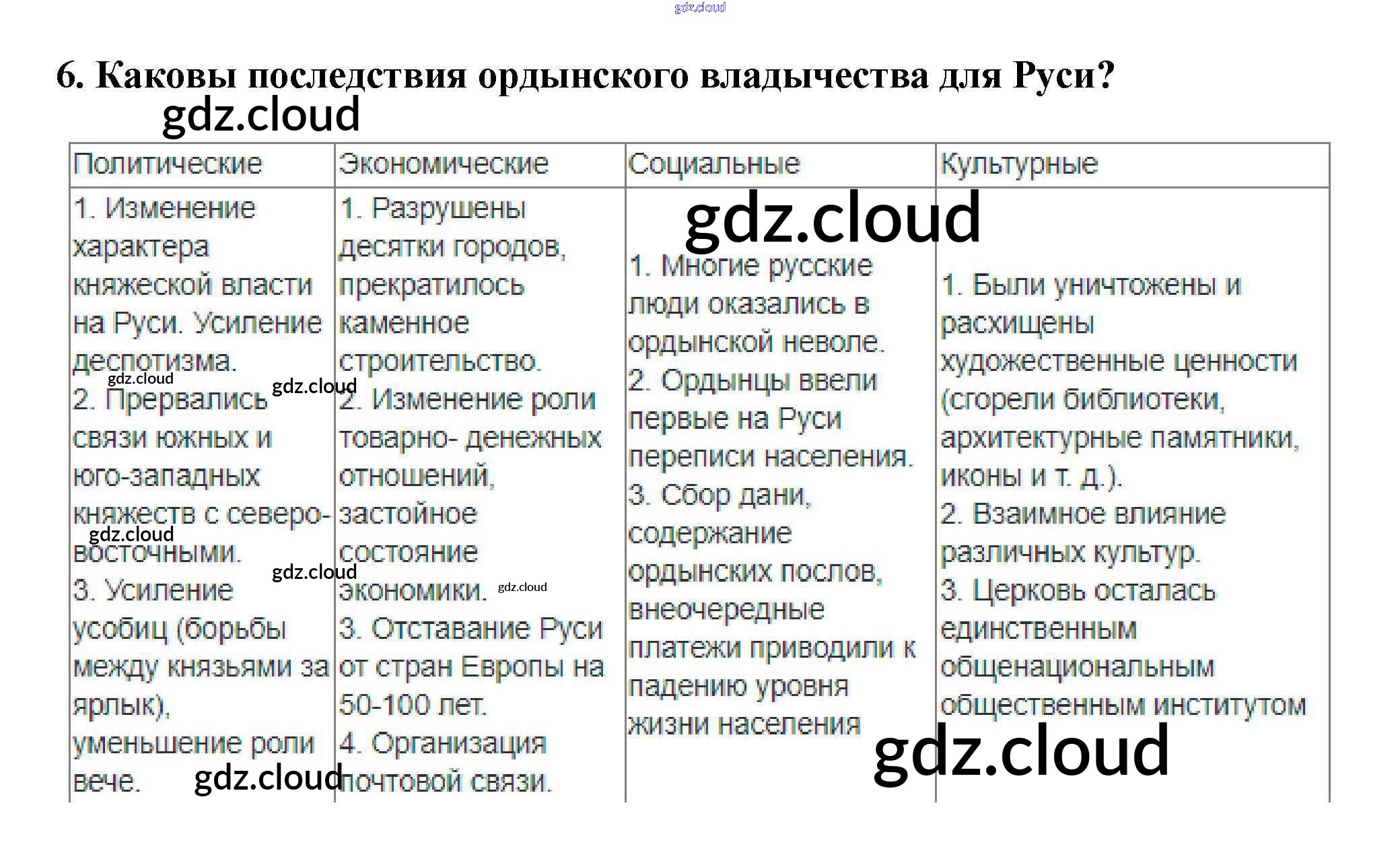 Ответ на задание 6 Учебник История за 6 (шестой) класс Арсентьев, Данилов, Стефанович 2016 Часть 1, 2