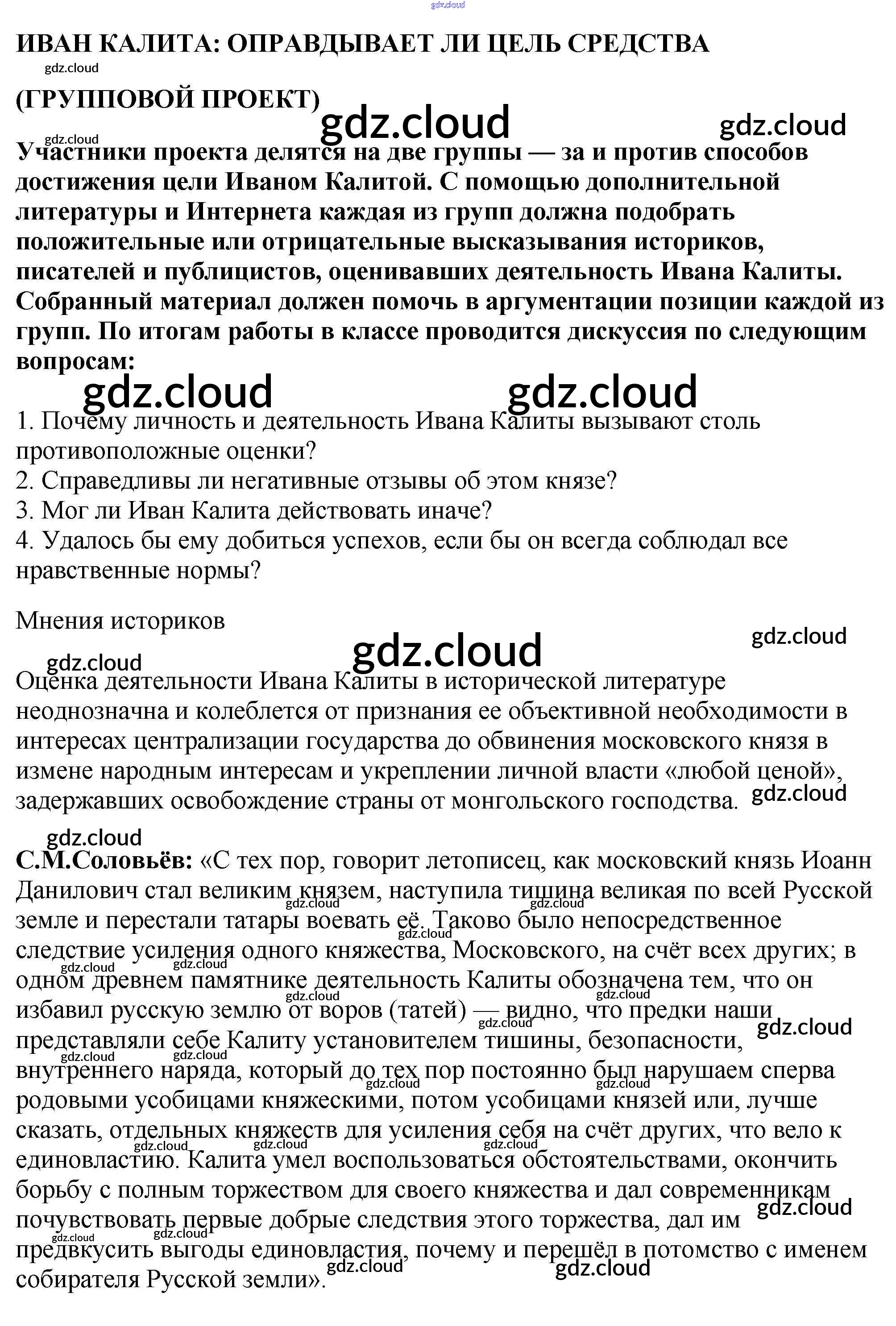 Проекты по Истории 6 класс Учебник Арсентьев Часть 1, 2 Просвещение