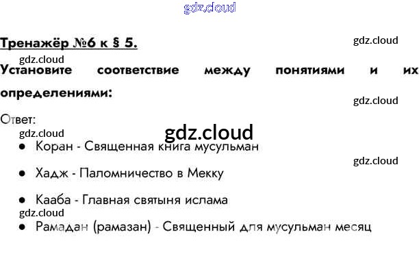 Тренажёр Ответы к §5 по Истории 6 класс Учебник Бойцов Инновационная школа Русское слово