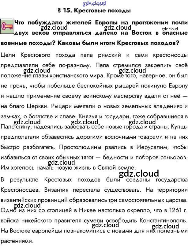 Ключевые вопросы Ответы к §15 по Истории 6 класс Учебник Бойцов Инновационная школа Русское слово