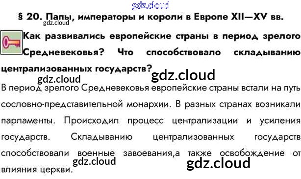 Ключевые вопросы Ответы к §20 по Истории 6 класс Учебник Бойцов Инновационная школа Русское слово