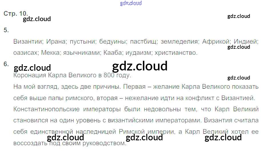 Ответ на задание стр. 10 Тетрадь-тренажер История за 6 (шестой) класс Ведюшкин, Ведюшкина Сферы 2017