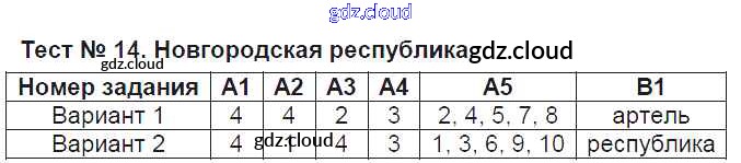 Ответ на задание Тест №14. Новгородская республика Контрольно-измерительные материалы (КИМ) История за 6 (шестой) класс Волкова 2017