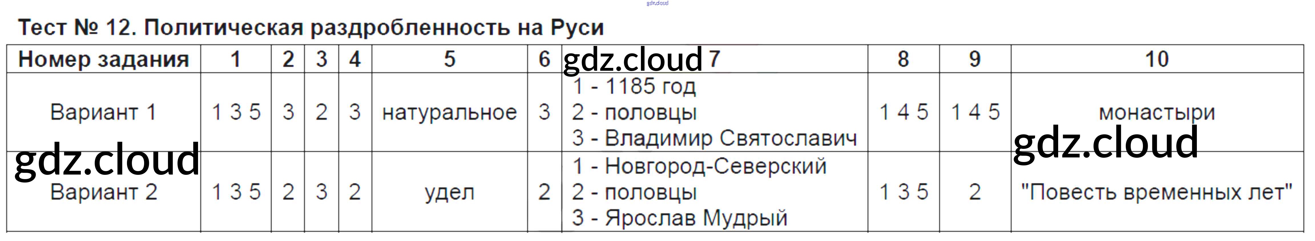 Ответ на задание Тест №12. Политическая раздробленность на Руси Тесты История за 6 (шестой) класс Воробьёва УМК 2017 Часть 1, 2 ФГОС онлайн и без номера телефона.