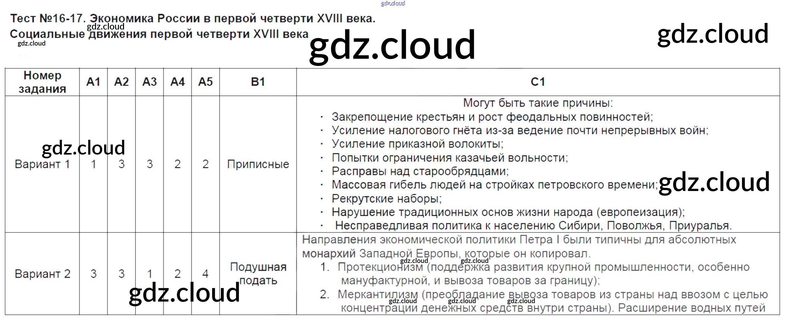 Ответ на задание 16-17 Контрольные измерительные материалы История за 7 (седьмой) класс Смирнов 2015 ФГОС онлайн и без номера телефона.